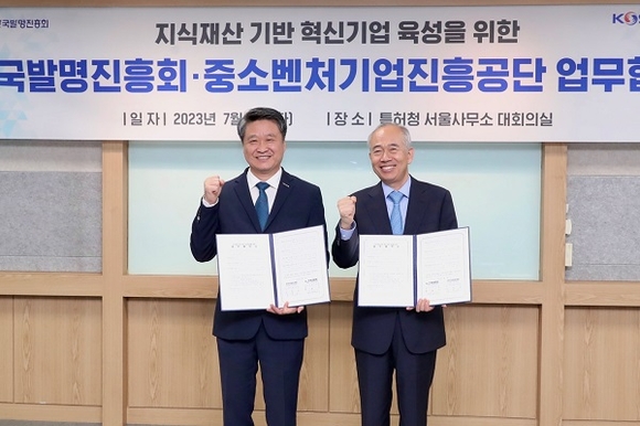 중소벤처기업진흥공단(이하 중진공)과 한국발명진흥회(이하 발명진흥회)가 11일 오전 발명진흥회 본사에서 '창업기업의 지식재산권 인식 제고 및 지식재산 기반 혁신기업 육성을 위한 업무협약'을 체결했다고 밝혔다.