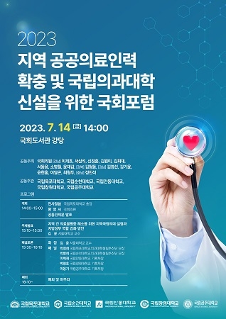 국립창원대학교는 국립목포대학교, 국립순천대학교, 국립안동대학교, 국립공주대학교가 공동주관하고, 해당 지역 국회의원들과 공동 주최하는 '지역 공공의료인력 확충 및 국립 의과대학 신설 촉구 국회포럼'을 14일 오후 2시 국회도서관 강당에서 개최한다고 밝혔다.