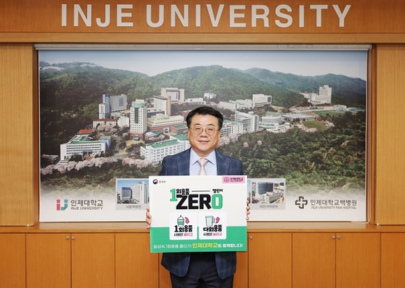 인제대학교 전민현 총장이 12일 일상생활 속 일회용품 사용을 줄이기 위한 '일회용품 제로 챌린지'에 동참했다.