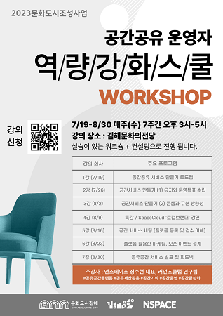 김해문화재단 김해문화도시센터가 '공간공유 운영자 역량강화 스쿨'을 오는 19일부터 8월 30일까지 매주 수요일 김해문화의전당에서 개최한다.