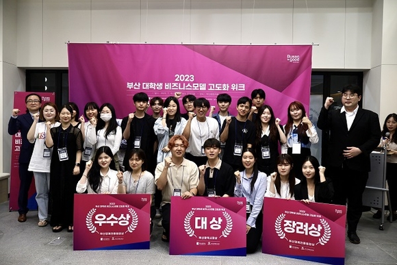 부산경제진흥원이 14일 오전 부산유라시아플랫폼에서 지역 대학생을 창업가로 육성하는 ‘부산 대학생 비즈니스모델 고도화 위크’ 시상식을 개최했다.