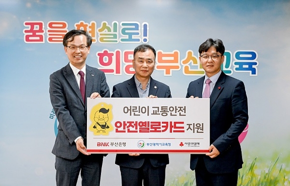 BNK부산은행이 17일 부산시교육청에서 어린이 교통안전을 위한 ‘안전옐로카드’ 전달식을 가졌다고 밝혔다.