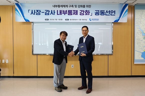 울산항만공사(UPA)가 내부통제 체계 강화의 강력한 의지표명을 위해 17일 오전 공사 12층 대회의실에서 ‘사장-감사 내부통제 강화 공동선언식’을 개최했다고 밝혔다.