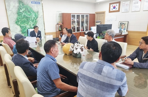 지난 14일 마천면 주민들이 주축이 된 함양 지리산 케이블카 유치위원회 임원들이 언론보도와 관련해 함양군수실을 항의 방문했다.