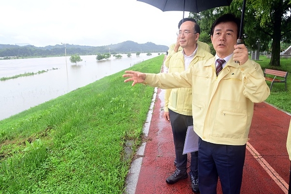 조규일 진주시장이 18일 집중호우 시 상습 침수도로인 진주교, 진양교 하부도로와 하대, 상평 강변도로 및 집현면 신당리 지방도 일대를 점검했다.
