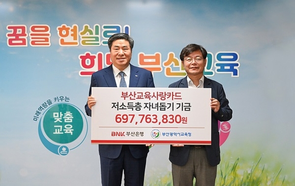 BNK부산은행이 19일 부산시교육청에서 ‘저소득 가정 자녀 돕기 기금’ 6억9700여만원을 전달했다고 밝혔다.