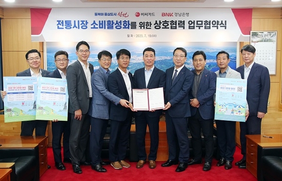 BNK경남은행은 19일 창원특례시·BC카드와 '전통시장 소비활성화를 위한 상호협력 업무 협약'을 체결했다.
