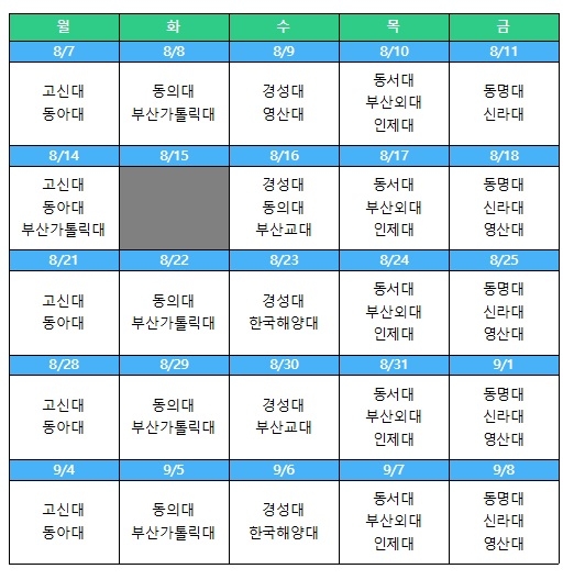 ‘IN 나눔카페’ 대학별 상담 일정표.(사진=부산시교육청 제공)