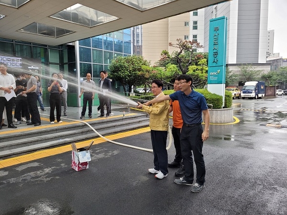 이번 합동훈련은 사옥 내 화재발생 상황을 가정해 ▲최초 화재 발견 시 대처방법 및 화재신고훈련 ▲화재대비 대피훈련 ▲초기 소화기구 사용훈련 등을 진행했다.