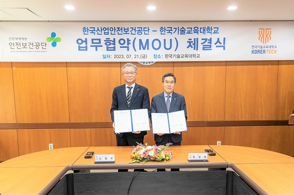 안전보건공단과 한국기술교육대학교(이하 한기대)는 21일 천안 한기대에서 3500여 개 직업훈련교육기관이 실시하는 직업훈련교육과정에 안전보건과목을 신설하는 업무협약을 체결했다.