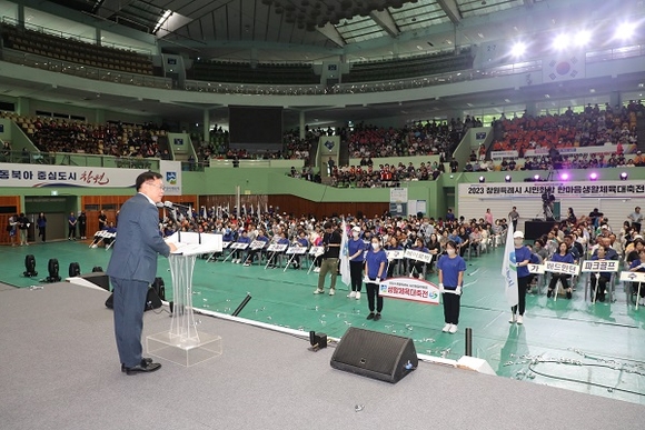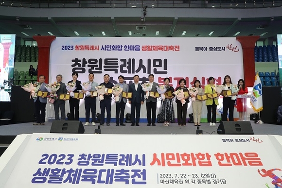 경남 창원시 생활체육인들의 큰 축제인 '2023 창원특례시 시민화합 한마음 생활체육대축전'이 지난 22일 마산체육관에서 생활체육 동호인 2500여명이 참석한 가운데 열렸다.