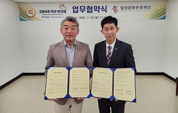 밀양문화관광재단과 공주 고마나루국제연극제 집행위원회는 지난 22일 밀양아리랑아트센터 1층 회의실에서 공연예술교류를 위한 업무협약을 체결했다.