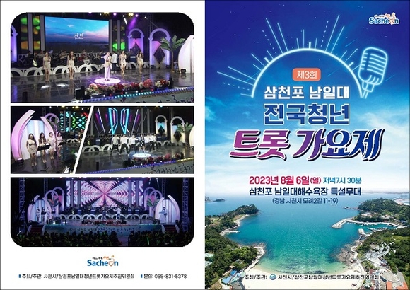 경남 사천시는 삼천포남일대청년트롯가요제 추진위원회가 8월 5, 6일 양일간 삼천포 남일대해수욕장에서 '제3회 삼천포 남일대 전국청년 트롯가요제'를 연다고 24일 밝혔다.