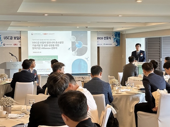 부산대학교는 탄소중립의 핵심 실증사업인 산업통상자원부 'USC급 보일러 암모니아 혼소발전 기술개발 및 실증'의 성공적인 사업 수행을 위한 '참여기관 Alliance 선포식'을 지난 21일 오후 부산 웨스틴조선에서 개최, 사업의 공동 연구개발 과제와 상호 협력체계를 점검하고 실무협의체를 구성하는 등 참여기관 간에 상호 긴밀히 협력하기로 했다.