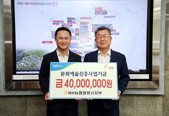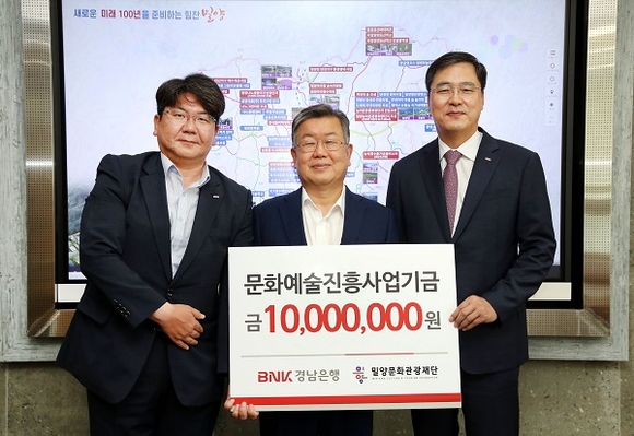 기탁금액은 농협은행 밀양시지부 4천만원과 경남은행 밀양지점 1000만원이며, 두 은행은 2016년부터 올해까지 8년 동안 지역문화예술 진흥을 위해 같은 금액을 기탁해왔다.
