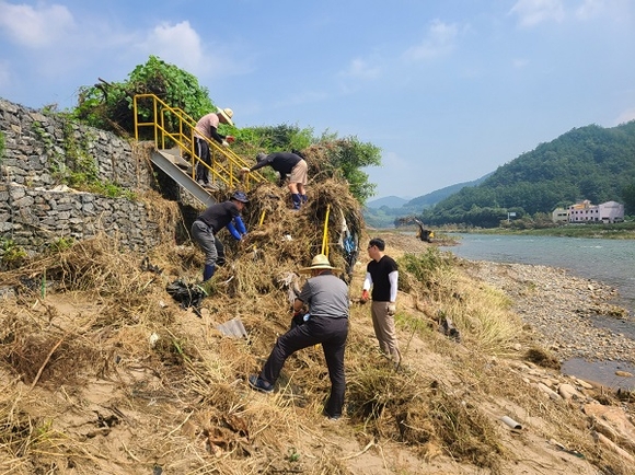 한국토지주택공사 충북지사가 수해복구 봉사를 하는 모습. (사진=LH 제공)