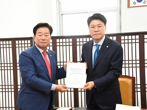 경남도의회 김진부 의장을 비롯한 도의원 5명은 25일 국회를 방문해 330만 경남 도민들의 염원인 우주항공청 설치 특별법의 조속한 제정을 위해 기자회견과 함께 도민들의 뜻을 담은 건의문을 국회 과학기술정보방송통신위원회에 전달했다.