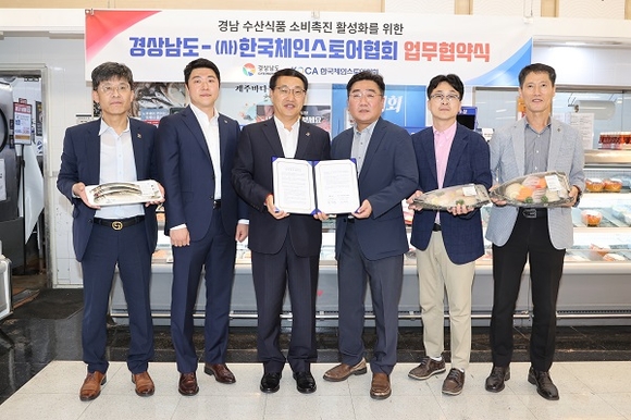경남도와 한국체인스토어협회(협회)는 25일 이마트 창원점에서 최만림 행정부지사, 허영재 협회 부회장 등이 참석한 가운데 지역에서 생산된 수산식품의 소비판로 확대 및 소비촉진 활성화를 위한 업무협약을 체결했다.