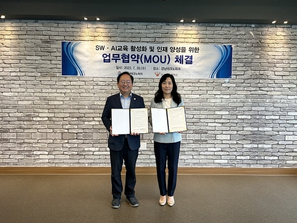 경남테크노파크(이하 경남TP)는 26일 진주교육대학교(이하 진주교대)와 SW·AI 교육 활성화 및 인재양성을 위한 업무협약을 맺었다.