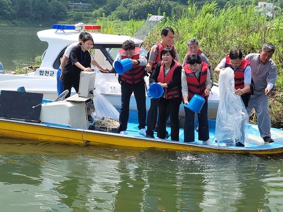 경남 합천군은 26일 합천호 일대에서 권영식·박안나·김문숙 군의원, 김배성 농업기술센터 소장, 김용준 축산과장, 봉산·대병 어업계장 및 어업인 등 15여명이 참석한 가운데 토속어종인 쏘가리 치어 1만 9700미를 방류했다.