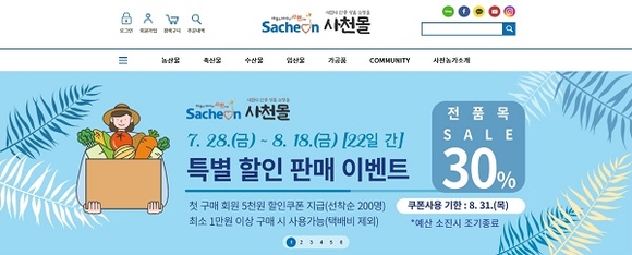 경남 사천시는 오는 28일부터 8월 18일까지 시 공식 쇼핑몰 '사천몰'에서 특산물 할인 이벤트를 진행한다고 26일 밝혔다.