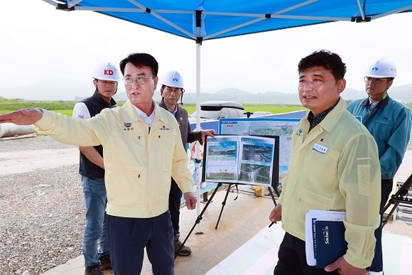 박동식 사천시장이 26일 여름철 재해예방을 위해 대규모 사업장인 화력발전소 우회도로 개설공사 등 도시계획도로 개설사업 현장을 방문했다.