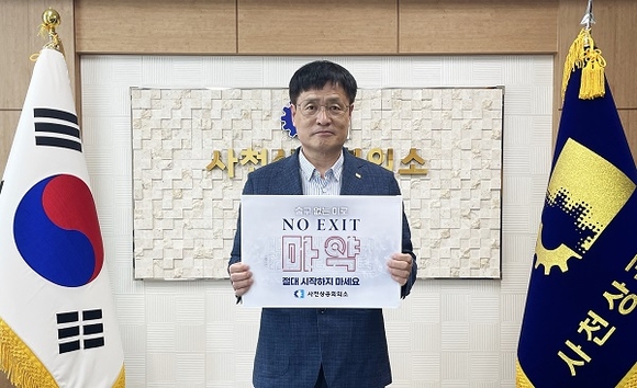 서희영 사천상공회의소 회장이 지난 25일 마약중독의 위험성과 경각심 고취를 위해 'NO EXIT' 마약 예방 릴레이 캠페인에 동참했다.