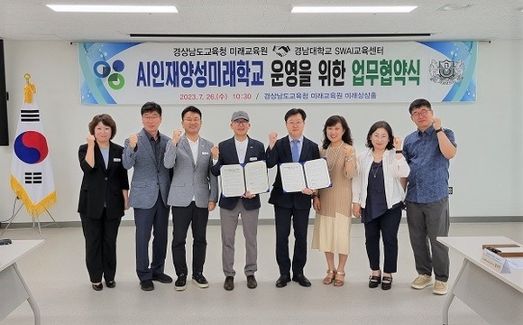 경남도교육청 미래교육원과 경남대학교 SWAI교육센터는 26일 도교육청 미래교육원 미래상상홀에서 AI인재양성미래학교 운영 지원을 위한 업무협약을 체결했다.