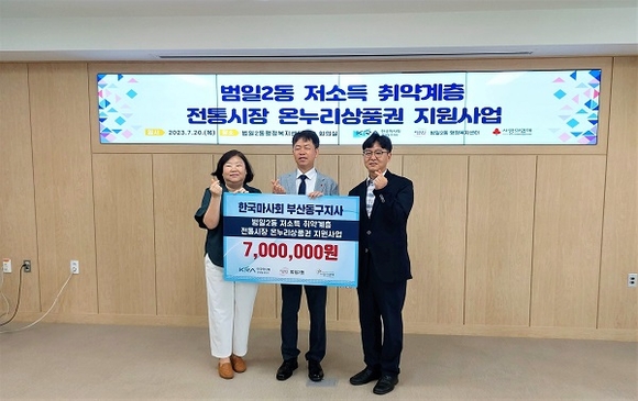 한국마사회 부산동구지사는 20일 부산사회복지공동모금회에 저소득 취약계층을 지원하고 전통시장 소비활성화를 위한 온누리 상품권 700만 원을 전달했다고 밝혔다.