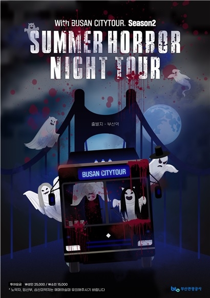 ‘썸머호러나이트 시즌 2’는 여름 시즌 부산 방문 관광객 및 시티투어 탑승객에게 볼거리와 즐거움을 선사하기 위한 야간관광 특별 프로그램으로 저승에서 지옥을 다스리는 염라대왕, 한국 대표 처녀귀신, 몽달귀신, 장산범 등이 탑승해 귀신 이야기를 들려줘 극한의 공포체험과 함께 부산 주요 야경을 만끽 할 수 있다.