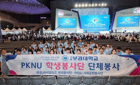 부경대 학생봉사단은 이날 오후 부산 해운대구 영화의전당에서 열린 '유엔군 참전의 날‧정전협정 70주년 기념식'에서 유엔참전용사·후손, 6·25 참전용사, 시민·군장병 등 참석자 응대와 행사장 안내 등 지원활동을 진행했다.