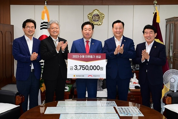 이번 성금은 지난 집중호우로 충남과 경북지역이 큰 피해를 입자, 슬픔과 시련에 잠긴 지역민들을 위로하고 온정을 전하기 위해 마련된 것으로 성금 모금에 전원 한뜻으로 동참했다.