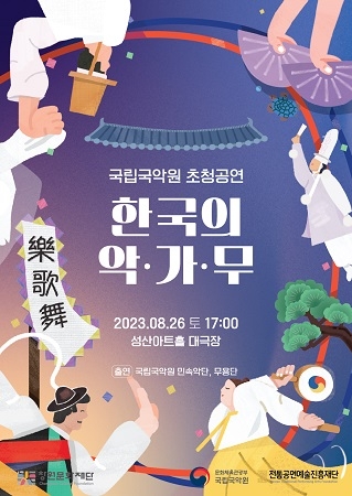 전통으로 가득한 흥과 멋이 어우러진 신명을 전해줄 부채춤·판소리·판굿·소고춤 등 국립국악원의 '한국의 악(樂)·가(歌)·무(舞)' 공연이 8월 26일 창원 성산아트홀 대극장 무대에 오른다.