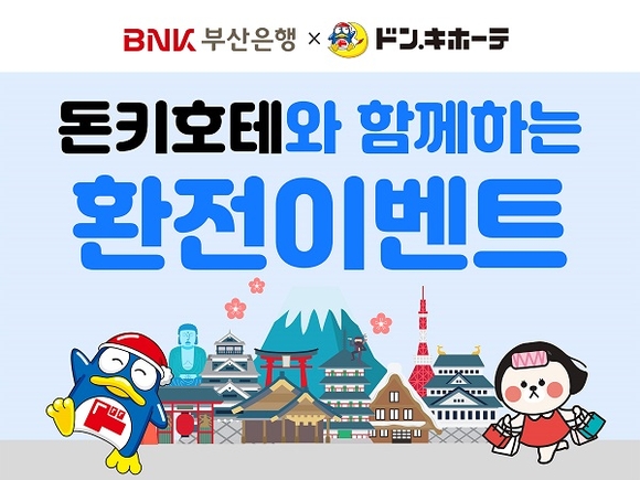 BNK부산은행이 모바일뱅킹 및 인터넷뱅킹 이용 고객을 대상으로 ‘돈키호테와 함께하는 환전 이벤트’를 오는 12월 31일까지 실시한다고 밝혔다.