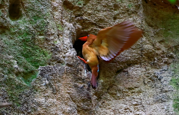 울산시는 지난 7월 20일, 울주군 상북면 한 계곡 흙 벼랑 구멍 속에 둥지를 틀고 먹이를 나르는 호반새 어미새 모습이 울산지역에서 활동 중인 윤기득 사진작가의 카메라에 관찰 기록됐다고 1일 밝혔다.