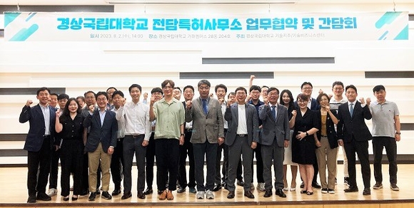 이날 업무협약식에는 경상국립대 정재우 산학협력단장, 강필순 기술비즈니스센터장과 전담특허사무소 18개사의 임직원 등 30여 명이 참석했다.