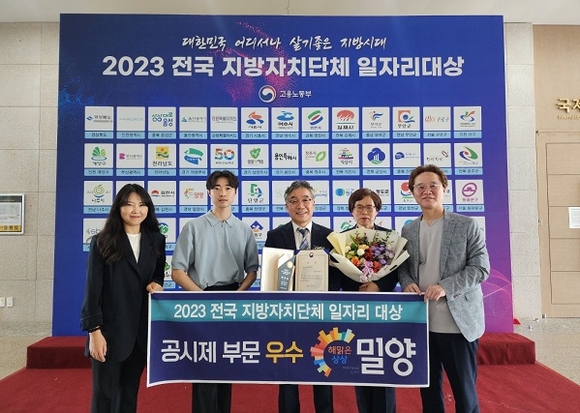 경남 밀양시는 2일 세종컨벤션센터에서 열린 '2023 전국지방자치단체 일자리 대상'에서 지역 일자리 공시제 부분 우수상을 수상해 상사업비 7천만 원을 확보했다고 밝혔다.