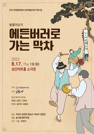 창원문화재단은 올해 공연예술단체 지원사업의 하나로 놀이패 베꾸마당의 풍물마당극 '에든버러로 가는 막차'를 오는 17일 오후 7시 30분 성산아트홀 소극장 무대에 올린다.