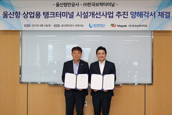 울산항만공사(UPA)가 3일 오전 공사 12층 대회의실에서 한국보팍터미날과 '울산항 상업용 탱크터미널 시설개선사업 추진'을 위한 MOU를 체결했다.
