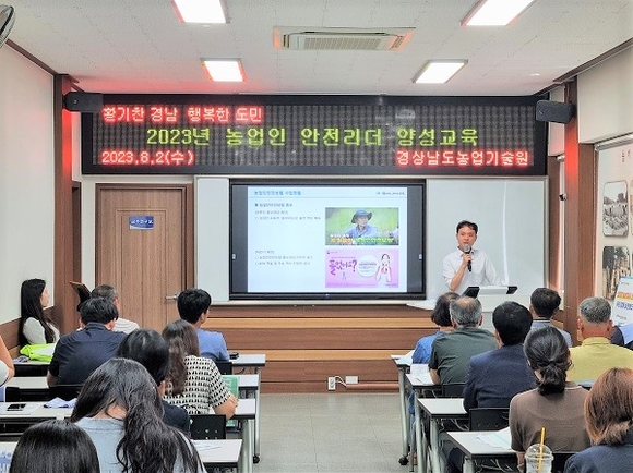 경남도농업기술센터에서 주최하는 농업인 안전리더 양성교육은 농업현장에서 안전실천 문화를 확산하고 안전의식 전환과 안전한 농촌일터 조성 및 보급을 위해 마련됐다.