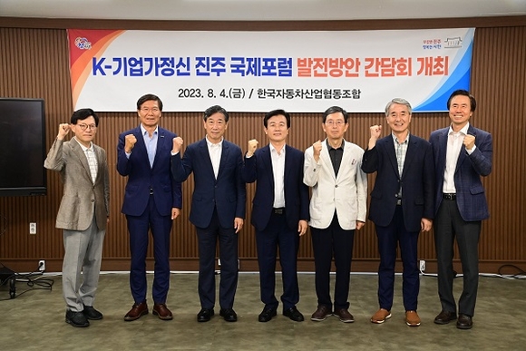 시는 4일 오전 11시 서울 서초구 한국자동차산업협동조합에서 'K-기업가정신 진주 국제포럼 발전방안 간담회'를 열고 국제적인 경제포럼으로 성장시키기 위한 각계 전문가들의 다양한 의견을 수렴했다.