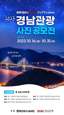 BNK경남은행은 무학 좋은데이나눔재단과 함께 '2023 경남 관광 사진 공모전'을 진행 중이라고 7일 밝혔다.
