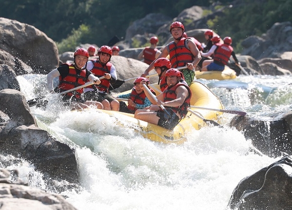 불볕더위가 절정을 이루고 있는 6일 경남 함양군 휴천면 엄천강에서 피서객들이 래프팅을 즐기며 더위를 날리고 있다. (사진=함양군 제공)