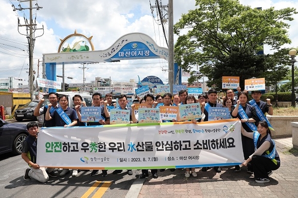 창원시설공단이 수산물 소비심리 위축으로 어려움을 겪고 있는 지역 소상공인을 돕기 위해 마산어시장에서 수산물 소비촉진 캠페인을 전개했다.
