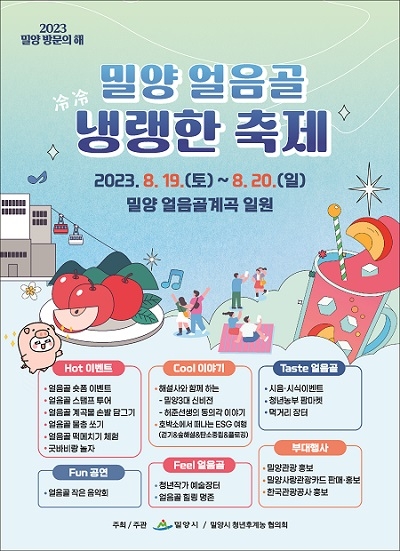 시 관계자는 “얼음골은 한여름에도 더위를 잊을 수 있는 특별한 곳인 만큼 많은 분들이 직접 느껴보시고 공모전에 참여해 주시기 바란다”며 “물총 쏘기, 얼음골 스탬프 투어, 호박소에서 떠나는 ESG여행 등 다양한 프로그램과 경품행사로 더위를 잊게 해줄 얼음골 냉랭(冷冷)한 축제에 초대한다”고 전했다.