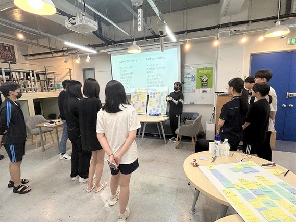 참가한 고등학생들은 한현석 교수와 이성빈 석사과정생, 김윤지 학생 지도로 디자인 개념 이해와 관찰을 통한 문제점 발견, 아이디에이션, 프로토타이핑과 시나리오 제작 활동을 진행했다.