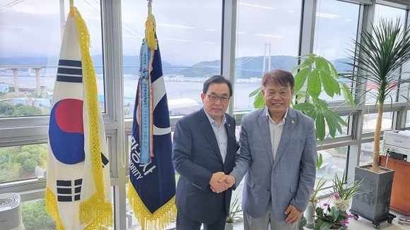 이채익 국민의힘 울산시당위원장이 9일 오후 울산항만공사를 방문해 김재균 사장과 환담을 나눴다.