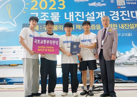 국립부경대학교는 건축공학과 이승수, 박정철, 정지호, 김혁 학생팀이 '2023 구조물 내진설계 경진대회'에서 국토교통부장관상을 수상했다고 9일 밝혔다.