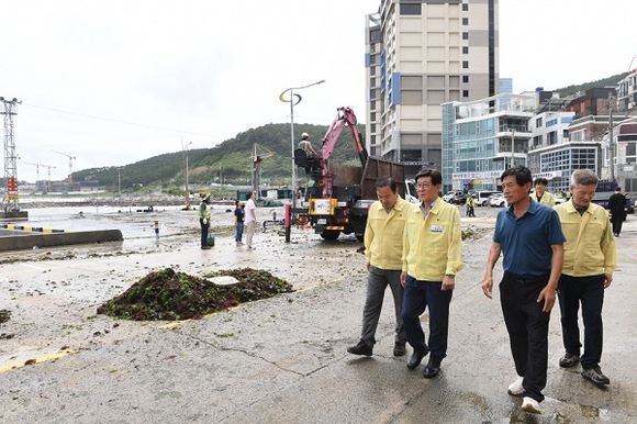 부산 기장군이 10일 제6호 태풍 카눈의 피해 상황 조사와 복구에 행정력을 집중하고 있다.