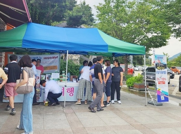 경남 함양군은 지난 5일부터 주말마다 함양휴게소 로컬푸드 행복장터에서 직거래 행사를 열어 방문객들에게 뜨거운 호응을 이끌고 있다.